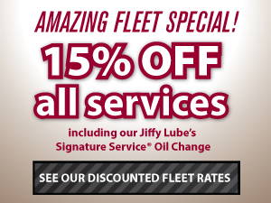 Fleet Specials and Services Nobody preserves the health and value of your vehicle better than Jiffy Lube®, but to sweeten the pot, Jiffy Lube is prepared to offer you 15% off all services. That’s right, 15% off. We want to service your fleet of vehicles, and nobody is better qualified then we are.
